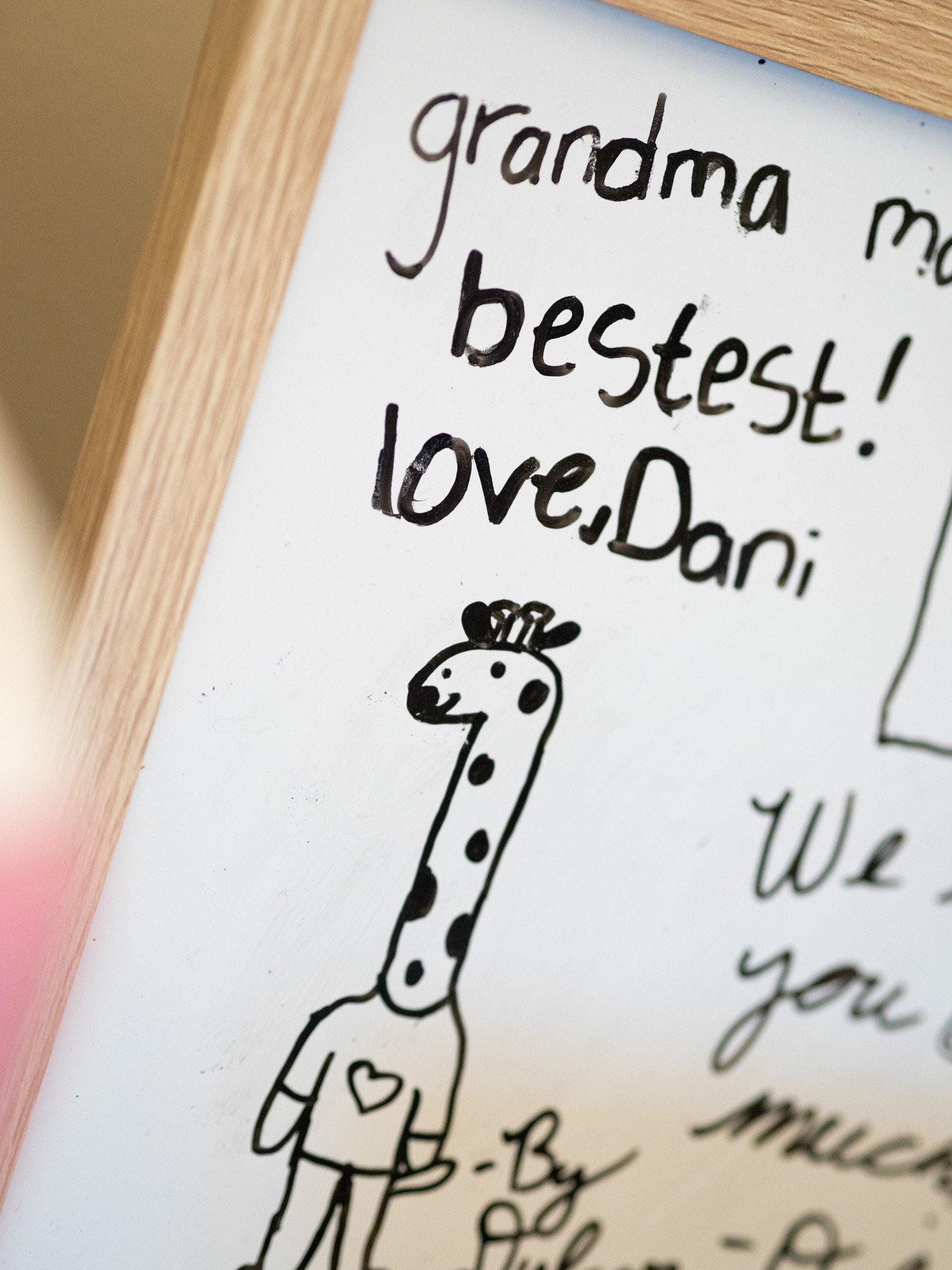 As we visited, it was easy to see how surrounded by love Mary was. In her space, a scrabble-themed wall hanging displayed the names of her great-grandchildren, and a message from one of them on her whiteboard made the room feel even more personal—little reminders that her life had reached outward into so many others.